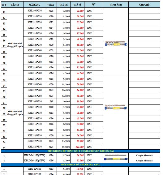 MŨI KHOÁN BÊ TÔNG 4 CẠNH